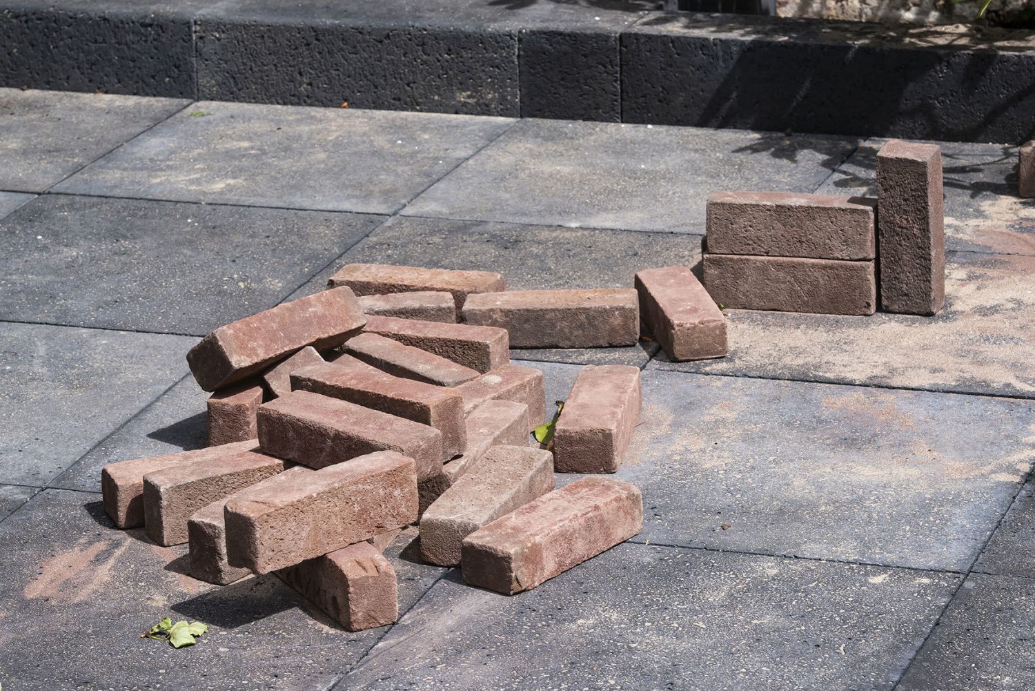 Een mooie tuin in een van de oudere wijken van Rotterdam. Hier een bijpassende tuin aangelegd, een mooie brede trap van Schellevis traptreden, verder bloembakken van Schellevis stapelblokken en bestrating van Schellevis tegels in kleur Carbon, in combinatie met rode gebakken klinkers. Langs de erfafscheiding een groene schutting van hardhouten palen, met gaasschermen en hedera er tegen aan. Het geheel compleet gemaakt met een mooie kunstgrasmat.